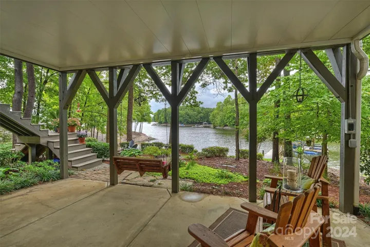 Discover lakeside luxury in this pristine Lake Norman ranch with walkout basement, offering 161 feet of deep-water frontage. Ideal for lake enthusiasts, this home boasts a private pier, covered floating dock with 7,000 lb. boat lift, PWC dock, and custom gazebo by the water. The great room w/ cathedral ceilings and a stone fireplace flows into a gourmet kitchen featuring stainless appliances, granite countertops, & panoramic lake views. The lower level includes a 2nd great room, 2 additional rooms for bedrooms or offices, & ample storage. Outside, enjoy a refinished composite deck, screened porch, & hot-tub-ready lower area. Recent updates include enhancements to the gazebo and dock, and a roof in 2019. New Lennox HVAC systems, central vacuum, full-yard irrigation, & year-round landscaping. Set in a peaceful cove w/ main channel views, this retreat offers privacy & adventure w/ quick access to marinas and dining. Don’t miss your chance to own a slice of Lake Norman paradise!