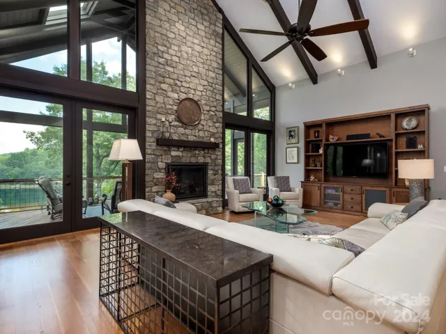 With spacious rooms & soaring 20-foot vaulted ceilings, this home perfectly captures the elegance of mountain living. The open floor plan includes a large kitchen, dining area, & living space that flows seamlessly onto the screened porch. The screened porch & private Jacuzzi deck off the primary suite offer a serene view of Lake Ticoa. Live comfortably on the main level, featuring a generous primary suite & an office both with stunning lake views. When guests arrive, the lower level provides two guest bedrooms with en suite bathrooms while the upstairs office easily converts into a bedroom with a Murphy bed. The owners combined two lakefront lots to create a 1.2-acre estate with 350 feet of deepwater frontage. The home, perched at the top of the lot, offers breathtaking views, while a short walk down leads to the dock, where you can swim in crystal-clear waters or launch your kayak. Golfers will enjoy the golf simulator in the basement! https://www.youtube.com/watch?v=xZQIatjAcKM
