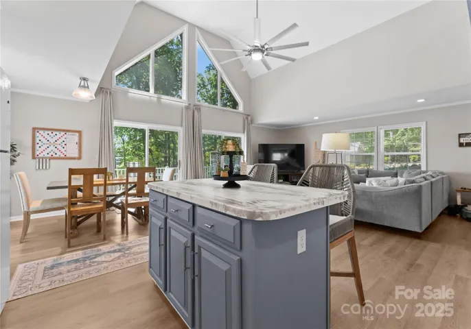 Embrace lakefront living in this updated Lake Norman cottage, offering charm, comfort, and wonderful views of the lake and marina! The main floor welcomes you with a soaring two-story great room drenched in natural light, along with two spacious bedrooms, including one with an en-suite bath, providing easy main-level living. Upstairs, a cozy loft area offers a quiet escape and relaxing lake views. A third bedroom becomes a serene hideaway with its own hall bath! The fully finished walk-out basement features a bonus/bedroom, bath, and full kitchen—perfect for guests or as a potential rental. Outdoors, relax on the expansive deck, take in the beautiful views of the marina, enjoy the fire pit under mature trees, or step down to your own dock for direct lake access. Whether you’re seeking a peaceful retreat or an income-generating vacation rental, this home delivers. Furnishings are negotiable, making for a turnkey lakefront experience.