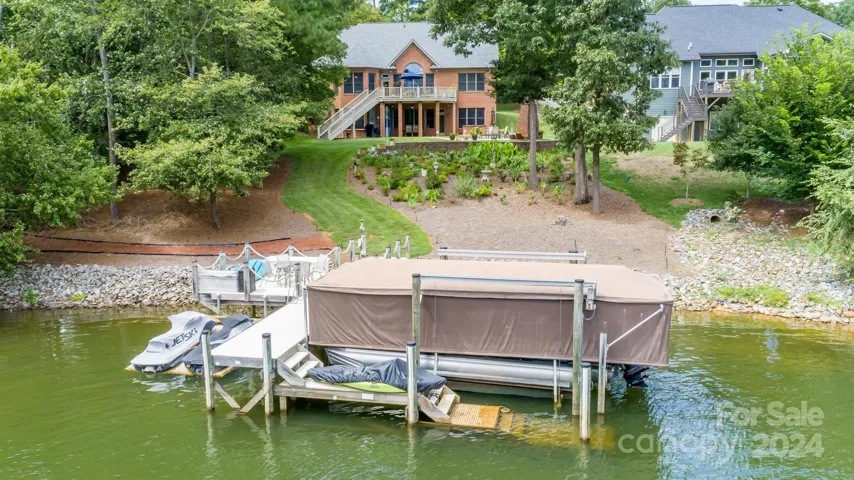 Welcome to Lake Norman Living in Lakepointe North Subdivision! Calling all AUTO enthusiasts, FULL Brick, 2 Story/basement, 4 Bedrooms/3.5 bathrooms/WATERFRONT home with garage space for 6 vehicles, a boat garage, RV parking pad. 2nd Living Qtrs in basement/Rec room, DETACHED GARAGE/shop/upstairs storage. Bonus Room over attached garage. Primary Bedroom main level, 2 bedrooms upstairs, 1 bedroom basement, Viking Gas Range, solid wood flooring, whirlpool, 2 closest in Primary Bedroom. The basement has interior & exterior entrances with a bedroom, full Bathroom, family room, billiards, bar/cooktop, refrigerator & microwave, exercise room, and storage. Gentle sloping lot, outside fireplace, Dredged Cove/6ft of water, Stationary dock, remote boat cover,7000 lb lift, Jett ski dock, Steps into Lake, House Roof 2021, Detached Garage Roof 2023,2 HVAC 2018, Water heater elements 2017. See the attached list of items that convey with the house.