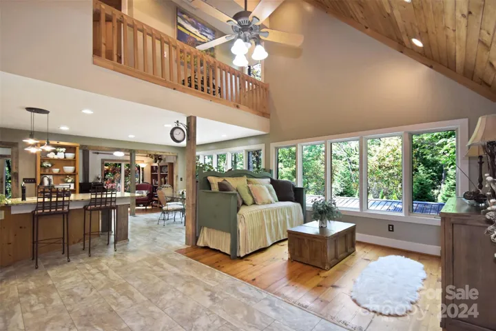 Nestled in the heart of Linville Falls this property features three levels, a soaring heart-of-pine ceiling with 5 beds (3 per septic records) & 3 full baths. A gourmet kitchen, complete with a sun-drenched keeping room, is ideal for hosting guests. The primary suite includes its own hearth room with a woodstove for cozy winter nights and a full en suite bath and a custom walk-in closet. The top floor boasts 2 bedrooms, a J&J full bath & a spacious closet. The lower level offers separate living quarters with a sleeping porch, tailor-made closet, separate full bath and a large bonus room for extra sleeping quarters or perfect for an additional family room. Owner averaged $412 a night when previously used for an AirBnb. Outside, a large workshop, an ATV garage and a multi car drive-through porte cochere. Less than 1 mile from Linville Falls and The Gorge Wilderness Area, The Blue Ridge Parkway and Linville Falls Winery. Grandfather MT., Banner Elk, Sugar and Beech Mountain all close by.