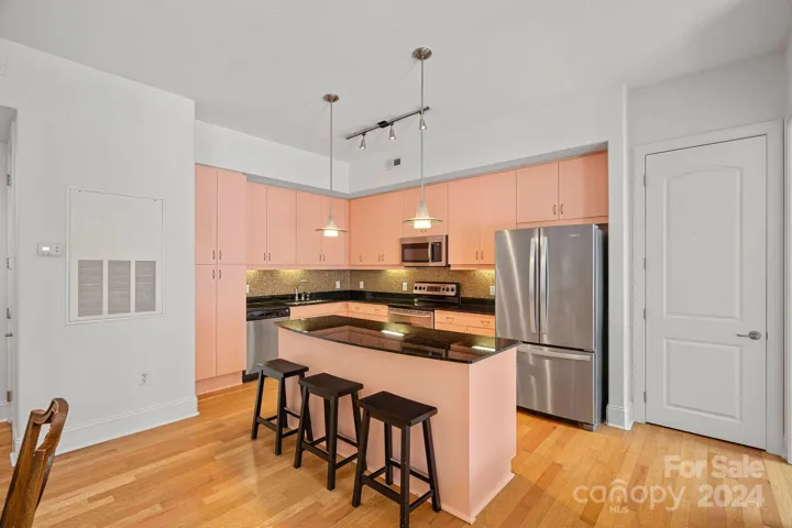 Discover modern living at its finest in this beautiful condo in sought-after Piedmont Row East Building! Featuring a vibrant kitchen with retro Malibu Peach painted cabinets, granite countertops, and a stylish tile backsplash, this home exudes both charm and functionality. The open floor plan showcases floor-to-ceiling windows in the living room and guest bedroom, leading to a spacious double balcony terrace perfect for relaxing and entertaining. Enjoy the convenience of a split 2-bedroom layout with a luxurious primary suite, complete with a custom closet. The home includes beautiful hardwood floors, stainless steel appliances, and ample natural light. This residence offers the ultimate in urban living with on-site amenities including a rooftop terrace, salon, restaurants and more. Additional perks include secured assigned parking and a large storage unit. Move-in ready and waiting for you!