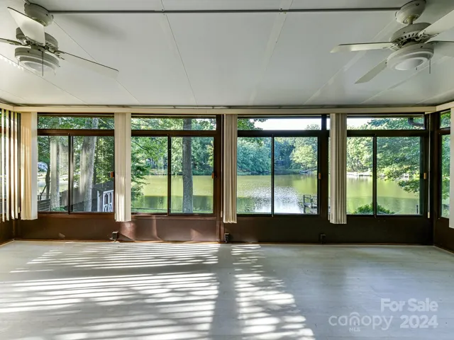 Water front living in the heart of Charlotte. This one story home offers wonderful views of the lake and a dock to relax on. Enjoy sitting in the sunroom with panoramic views of the lake. The kitchen has hardwood laminate floors, custom painted cabinets, solid surface countertops, tile back splash, built in microwave and breakfast bar. The great room offers soaring ceilings, built in book shelves and a fireplace with gas logs. Hardwood laminate floors through most of the home. The primary bedroom is cozy, and has dual sinks and water closet in the bathroom. There is an unfinished basement that would be perfect for a workshop. The hall bath has laminate hardwood floors as well. Must see!
