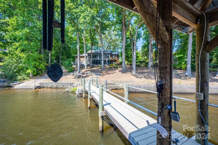 Relax and enjoy the beauty of Lake Norman,This stunning log cabin home complete with a cover dock ,all weather room,open deck area,stone patio complete with a fire pit,finished walk out basement,primary bedroom on the main level, and a beautiful stone fireplace in the family room. Whether you are enjoying sitting on the front porch admiring the beautiful garden area,swimming in your very calm private cove,sitting by the firepit or watching the rain fall over Lake Norman from your swing in the all weather room.This amazing home offers the best of Lake living!