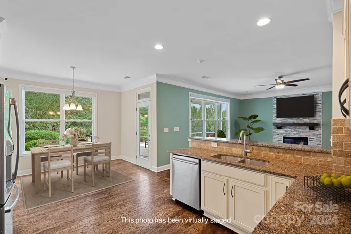 Lakefront community close to everything! Situated on a private level lot, this beautifully maintained home is 100 percent move in ready. Hardwood floors greet you as you step inside and flow throughout the entire first floor. Main floor office with French doors offers a private workspace. The DR features wainscoting and coffered ceiling and conveniently connects to the kitchen through the butlers pantry. The open concept FR is filled with natural light and has a stacked stone gas FP. Lovely kitchen w/granite counters, under cabinet lighting, tile back splash and breakfast area. Spacious primary suite including UPDATED BATH! 2 addt'l BR's, Bed/Bonus, and laundry room complete the 2nd floor. Enjoy the screened porch overlooking the travertine patio and private fenced yard filled with mature landscaping. New lighting and fans. Exterior painted this summer. You will love all the amenities including lake access, boat ramp, pool, tennis and of course pickleball!10 minutes to the airport.