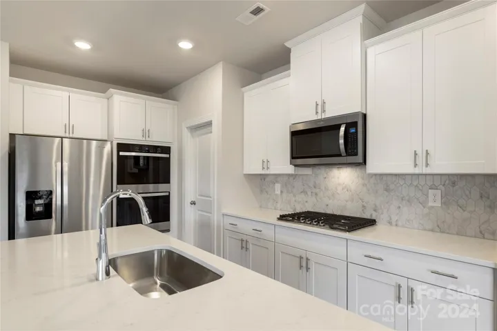 This energy-efficient home offers a perfect blend of style and functionality. The exterior features elegant architectural designs, Bermuda sod, and a covered front porch, creating a welcoming entry. Inside, enjoy modern touches like crown molding, 9' ceilings, and stain-resistant Mohawk® flooring. The gourmet kitchen is a chef’s dream with quartz countertops, Timberlake® cabinetry, and a full suite of Whirlpool® stainless steel appliances. The spacious primary suite includes a walk-in closet and a luxurious bathroom with dual vanities and an acrylic shower. Health and energy efficiency are top priorities with LED lighting, Low-E windows, MERV 13 air filtration, and spray foam insulation. The home also includes the Connected Home™ Automation Suite with smart locks, door sensors, and a video doorbell for added convenience and security. Superior construction and energy-saving features make this home both comfortable and eco-friendly.