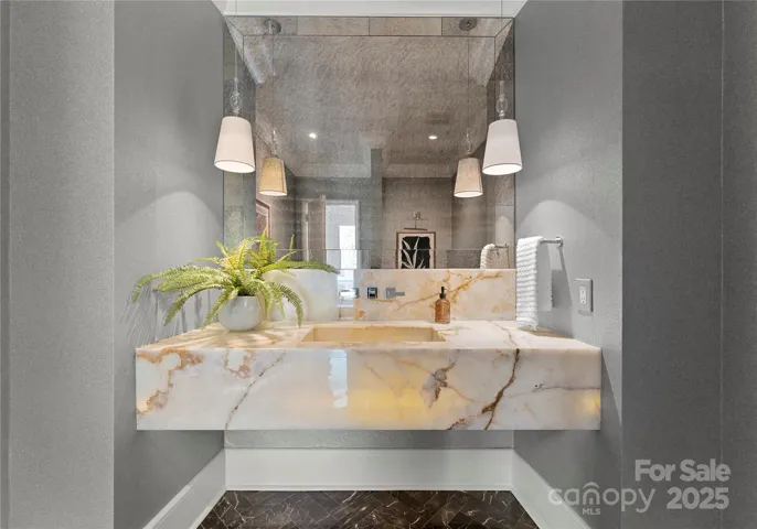 A luxurious old world estate, nestled in the prestigious gated Morrorcroft community. The exterior showcases an invigorating fusion of stone craftsmanship and a terracotta roof. Upon entrance, warmth envelopes you as you step onto heated flooring while surrounded by an exquisite blend of modern decor enriching the ambiance, featuring high-quality materials and craftsmanship. Your culinary dreams can become a reality in our chef’s kitchen, fully loaded high-end appliances, and a private wine cellar accompanied by Sub-Zero wine cooler. Outdoor entertainment is revolutionized with a resort-style in-ground pool and hot tub, along with an inviting cabana bar. Extraordinary landscaping enhances your privacy, ensuring a discrete environment for your gatherings. A full home gym with a sauna and attached bathroom coupled with ample vehicle parking facilitated by a three-car garage and a provision for two-car lifts perfectly caters to fitness enthusiasts and automobile connoisseurs alike.