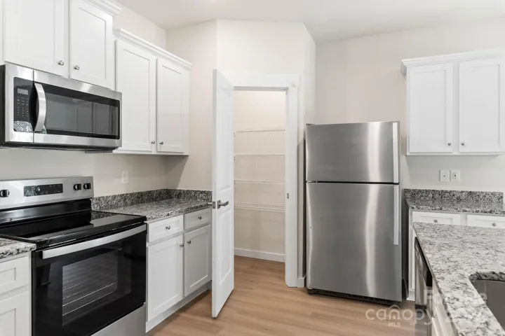 This beautiful corner lot has plenty of privacy and thick hardwoods in the backyard for even more privacy and relaxation. This 4 bedroom, 2.5 bathroom home has been thoughtfully designed with beautiful updates. The stone accent on the exterior of the home provides beautiful curb appeal. This brand new home is complete with new and improved features throughout the home, adding extra touches of comfort and beauty you are sure to appreciate such as 9 foot ceilings on the main floor. A chef ready kitchen awaits with a large island and plenty of cabinets with soft-close feature, granite counters, Whirlpool brand stainless steel appliances - refrigerator, dishwasher, oven and microwave. Spacious primary suite with a soaring vaulted ceiling, private bath and large walk-in closet. Enjoy our neighborhood park and let your pets play at the dog park.