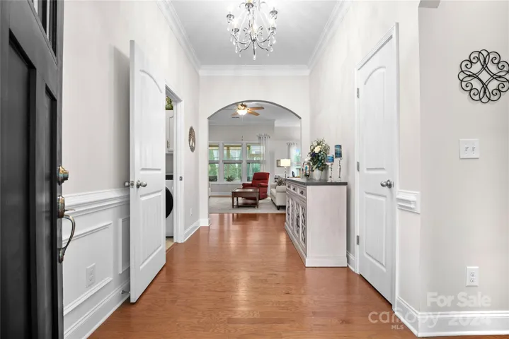 Beautiful 1-story home in desirable waterfront community. Wonderful open floor plan with hardwoods & crown molding throughout. Great room with gas fireplace with quartz surround. Updated kitchen with quartz countertops, ceramic tile backsplash, stainless steel appliances & pantry. Primary suite has vaulted ceilings & french doors out to the screened lanai. Primary bath has dual sinks, garden tub, framed glass shower & walk-in closet. Screened lanai great for relaxing all year long as the screens can be closed. Backyard has custom paver patio with a seating wall perfect for entertaining. Amenities include two pools, clubhouse with fitness center, fun planned activities, tennis courts, pickleball, bocce ball, playground, dog park, lake access, lakeside picnic areas, walking trails, boat ramp and so much more. This home is only minutes to the airport, 15-20 minutes from Center City, 5 minutes to 485 & 85, and only 10 minutes to Historic Belmont.