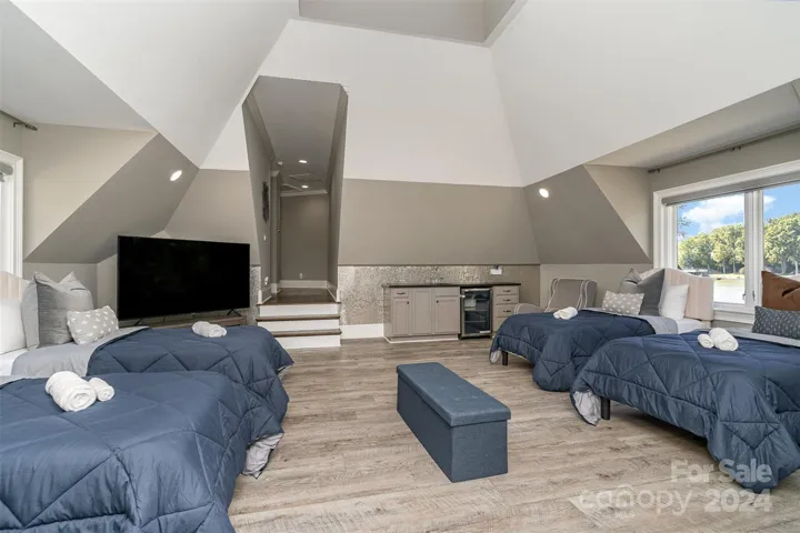 Experience unparalleled luxury with this stunning 4-bedroom, 4.5-bath estate on the shores of Lake Norman. From the moment you enter the private estate gate, be captivated by breathtaking, panoramic water views that stretch for miles. The home’s grand two-story great room, bathed in natural light, boasts a wall of windows offering uninterrupted lake vistas. The main level features a sophisticated primary suite, complete with a spa-inspired ensuite bath showcasing a marble European shower, freestanding tub, and dual vanities. Upstairs, three spacious bedrooms, each with a private ensuite, provide comfort and privacy. A generously-sized bonus room, equipped with a wet bar and mini fridge, is perfect for entertaining or unwinding. This is lakefront living at its finest.