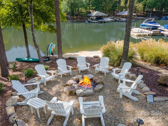 VACATION EVERYDAY! Beautiful Waterfront in quiet cove. Dredged/deeper water. Stunning Views, Watch wildlife, Private Dock w/lift, Swim from private Beach, Bathe in the Sun on large sundeck, Wood Burning Firepit by lake, Gas Firepit on over size patio, Stone Pellet Grill w/Gas burner, Pizza Station, This spacious Open Floorplan was built to entertain, Dual Gas Stone Fireplaces in great room and on large covered patio, Stone benches, Sliding Double Doors opens the home up to the outside. Hard Stucco/French Country, 1.30 Acres, Lush Landscapes, Fenced yard, Covered Front Porch w/Flagstone, Office w/Coffered Ceiling & Barn Door, 2 Story Great Room, Master on Main with Large Steam Shower, Dual Sinks, Custom Walk in Closet with Access to Laundry Room. Kitchen features Lg Island w/bar seating for 8, 6 Burner Gas Stove, Double Oven, SS Appliances, Dining Room with tons of cabinets, 2nd Master Up with walk in closet, Oversized Game/Media Room, Movie Projector. 3 Car Garage w/built in Cabinets.