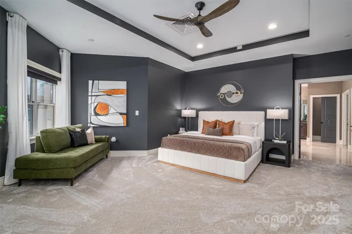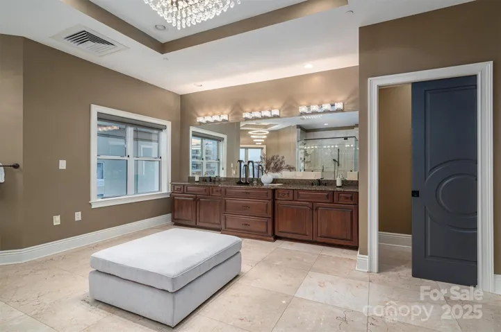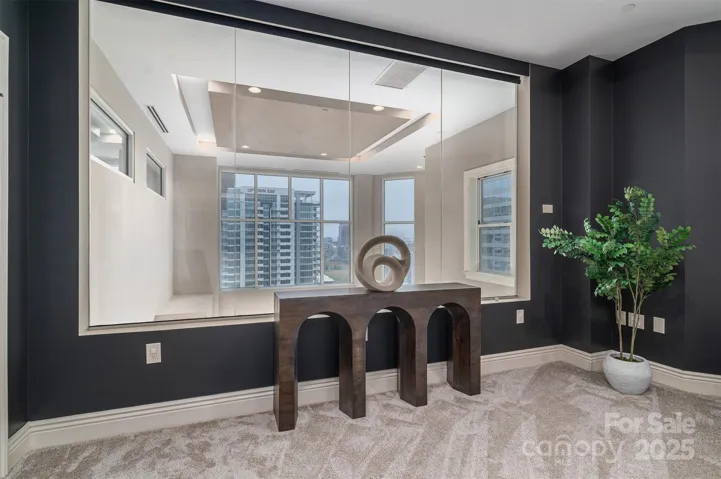Stunning luxury penthouse in The Madison, a boutique collection 26 luxury condos in Uptown Charlotte. This corner unit features soaring 20-foot ceilings, multiple terraces, and breathtaking views. The bright, airy home is filled with natural light from floor-to-ceiling windows, and includes newly installed premium carpet and fresh paint, making it move-in ready. The dedicated office, featuring a built-in desk, bookshelves, and a closet, offers the versatility to serve as a 3rd bedroom. Front closet at entryway is designed with the potential for a private elevator, as it can be converted to an elevator shaft. Enjoy expansive spa-like bathrooms, a top-of-the-line kitchen, and generous entertaining spaces. Residents have access to a state-of-the-art fitness center, concierge services, and two covered garage parking spaces. With a prime location for both work and play, The Madison delivers upscale living at its finest. Owners are licensed NC real estate brokers. Schedule a Showing today!