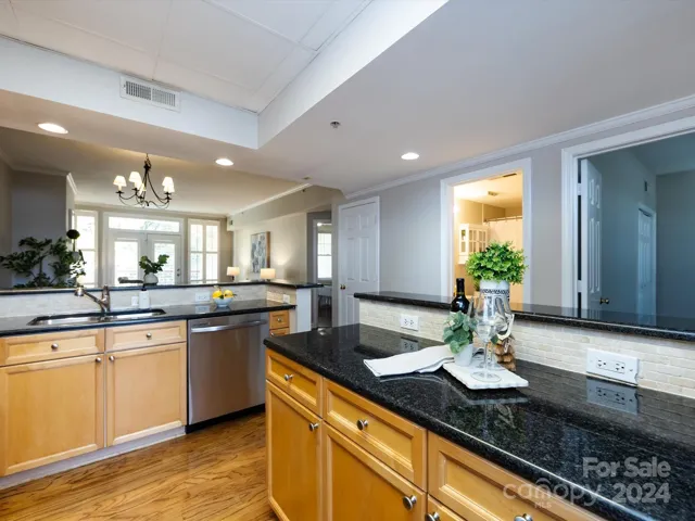 Coveted Uptown condo in the heart of 4th Ward, overlooking Pine St, w/Amazing Views of Charlotte Skyline & park from covered balcony! 2 Bedroom, 2 Bath Condo features Kitchen w/brand new stainless steel appliances except dishwashwer (microwave on order & to be replaced ASAP), granite counters, breakfast bar, plenty of cabinetry for storage, tile back splash, recessed lights & pantry! Living Room w/balcony access features fireplace w/gas logs & plantation shutters! Spacious Primary Suite w/great views, balcony access, walk in closet & private bath! Spacious Guest Suite & Full Bath! Perfectly situated, this condo is steps away from Harris Teeter, adjacent to 4th Ward Park (for relaxing or great for dog walking) & in close proximity to vibrant restaurants, bars, and shopping. Embrace modern living in a stylish, centrally located urban retreat. Don't forget to checkout the rooftop terrace that features grilling areas & incredible city views! Secure lobby entrance & elevator access!