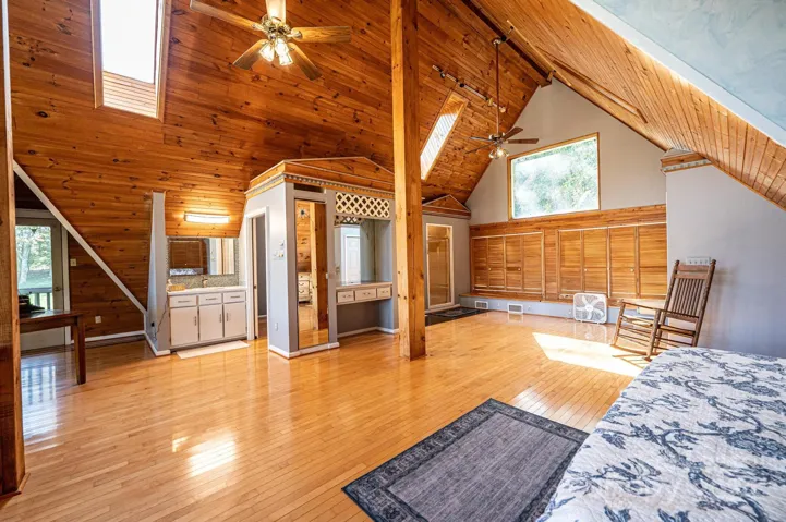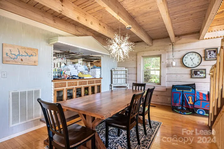 Fully furnished LAKEFRONT home!!! Every day will feel like a vacation in this 2-story A-Frame with stunning views of Lake Hickory!!! Featuring a large main level with soaring ceilings and panoramic views of the lake from the floor to ceiling windows, gorgeous open floorplan with Great Room open to the Dining Area w/beamed ceiling & Kitchen with island & fully stocked cabinets. 2nd bedroom and full bathroom with laundry on the main level as well. The Primary Suite expands throughout the entire upstairs loft with views of the lake. Basement w/plenty of space for 2nd Living Area with Kitchenette, rooms for guests/office space, a full bathroom and patio. Walkout Basement provides views of lake. Loads of space & amazing views throughout. Whether looking for a midterm rental or a place to stay while you build or find your primary residence, this is a wonderful temporary spot! A must see!