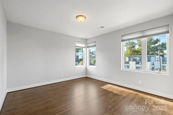 On the main level, you’ll find a versatile spare room that can serve as a guest suite, home office, or playroom. The third-floor primary suite offers a serene retreat with a generous closet and a luxurious en-suite bathroom, complete with dual vanities and large walk-in shower. An additional bedroom on the third level provides flexibility for family or guests.