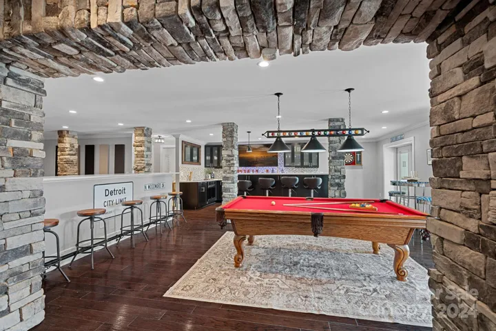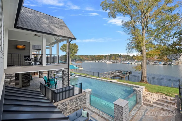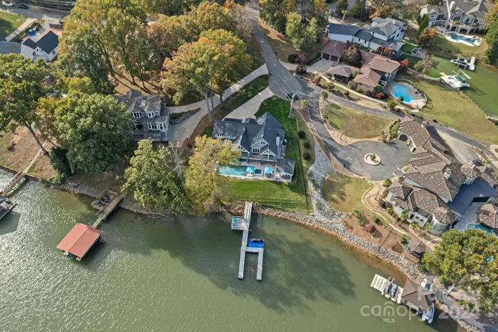Fully renovated waterfront home where modern elegance meets serene lakefront retreat. Spacious 3-bedroom residence features 4 full baths and 2 half baths, highlighted by an open floor plan that seamlessly connects indoor and outdoor living. Retractable doors lead to a multi-level outdoor deck, perfect for entertaining while enjoying 200 feet of shorefront. The main floor hosts a luxurious primary suite complete with a closet system, the upper level includes two additional bedrooms and baths with walk-in showers. Multiple versatile sitting areas and a flex room can easily accommodate a fourth bedroom. The lower level is an entertainer’s paradise, featuring a full kitchen, bar, billiards area, and a movie zone with theater seating. Step outside to your private oasis with a custom heated inground pool, travertine patio, and an outdoor kitchen. The boat dock includes a lift and ample seating. This retreat perfectly combines luxury, comfort, and endless entertainment opportunities!