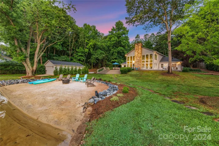 This waterfront home with sweeping sun rise views offers a seamless fusion of industrial textures and contemporary coastal décor. With approximately 2400 square feet and two levels of living space, you are certainly going to be in awe of the abundance of beauty and comfort in this home. Features 3 bedrooms that will accommodate king beds and include ensuite baths. Upstairs, find a one of a kind bonus room with full bath and bunks installed. Plenty of space for your family and friends to enjoy lakeside luxury living at its best. In addition, this property boasts a two car detached garage/boathouse. The outside living area is just as incredible as the interior with a large deck to relax on and take in the incredible views, a private covered dock, natural sandy beach, fire pit, and boat ramp. This home is currently being used as a vacation rental and is income producing. All furnishings convey with the property.