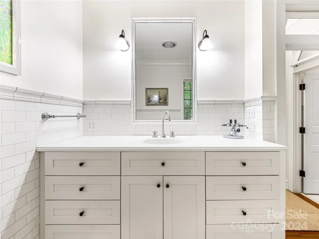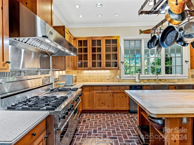 A beautifully designed & skillfully constructed 4 bedroom, 5 1/2 bath farmhouse charmer! An oversized chef’s kitchen, with functional island that seats 8 comfortably, brings the family “farmhouse close”. Double-hung windows separate the kitchen from the cozy den/office offering separation or inclusiveness, you choose. A stone fireplace & beamed cathedral ceiling in the great room welcome natural light from the wall of transom windows. A main level primary suite includes 2 full baths with comfort height vanities & provides everything needed for one level living & offers privacy from the 3 guest suits downstairs. An elevator IS available to the impressive lower level. Downstairs a spacious family room, with a stone faced, wood fired pizza oven, opens to the second covered porch. 3 oversized guest suites (1 with sauna) welcomes guests. A brick cart path leads to the 100’ lake frontage with boathouse & private dock. Enjoy magnificent views of the surrounding mountains from both locations.