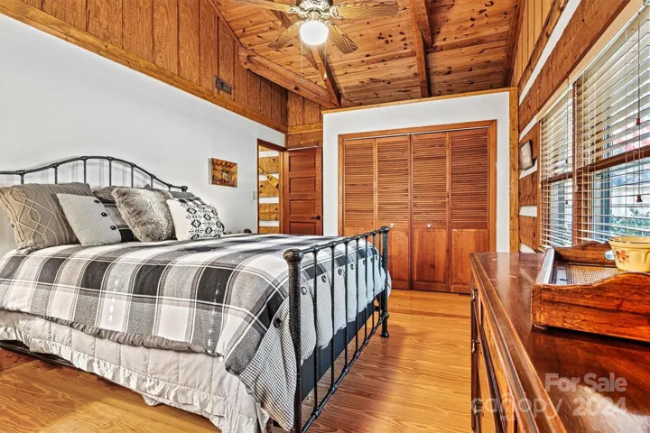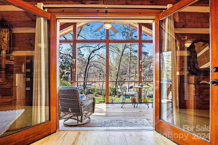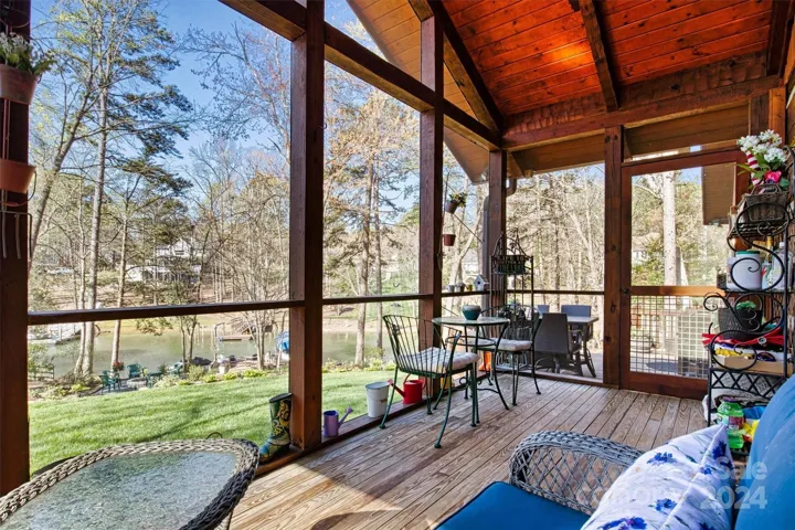 Back on Market no fault to seller! MUST SEE this perfect combination of relaxation and recreation. Immaculate log cabin with vaulted ceilings, gas log & stone fireplace, hand carved beams, and solid 6" wood plank floors. Enjoy lakefront living with a large dock, covered boat lift, and jet ski dock. Beautifully landscaped yard and outdoor spaces including firepit patio. Kitchen updated with SS appliances, quartz countertops, and bluestone island; opens onto lake-view sunroom & deck. Large primary with renovated primary bath, jacuzzi tub; also opens to the screened porch overlooking lake. Large second bedroom with additional Murphy bed allowing it to sleep 6! Large carport/entertainment space with exposed beams, stone & ceiling fans. Peaceful cove close to main channel, on quiet cul de sac in Mooresville close to shopping, restaurants, and schools. No HOA fee. This charming home would also make a wonderful investment opportunity in sought after Lake Norman.