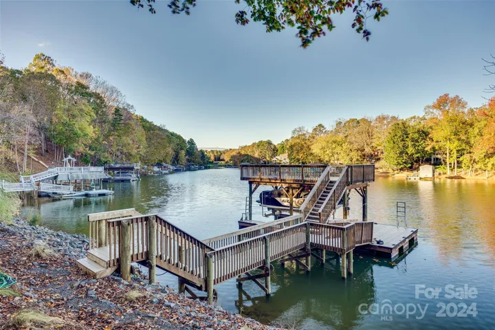 Discover the epitome of lakeside living! This property exudes tranquility and seclusion but is just seconds to the main channel by water! Updated 4-bed, 2 bath retreat boasts breathtaking waterfront views with natural light streaming through all the lakeside windows. Tucked away in a quiet cove with 82 ft. of shoreline with rip rap for stabilization with no through boat traffic. Easy walk to the water from the house. Great year round deep water, double decker dock with approx 16' in water depth and oversized floating swim platform. Boat slip with 2-motor 8,000 lb lift with aluminum bunks on risers. Entertain on one of the north facing multiple covered & open decks with a gas line for your grill or fire table and mounted TV for year long enjoyment. Features- new luxury vinyl plank flooring on main, painted white kitchen cabinets, newer windows & doors, cement board siding, insulation, 4x exterior retaining walls, Rinnai tankless hot water heater and so much more!