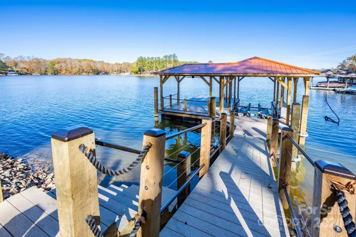 Experience mountain-like serenity with stunning Lake Norman views from this beautiful home on a secluded, manicured acre lot. Enter from the circular driveway and step through the cvd. porch into the soaring great room w/ amazing lake views. Relax by the massive stone fireplace in this bright, open space just off the impressive kitchen w/ huge island. Main level primary bedroom also offers incredible lake views from its own wing of the home. Upstairs find a lg. bedroom suite w/ full bath, also perfect as a media room. Downstairs features a large family room w/ wet bar, wine fridge, kegerator, and two additional bedrooms & baths. Enjoy the outdoors from the deck, screened porch, patio, or lakeside patio w/ fireplace. Take a dip in the calm waters of this area of the lake from the cvd. dock w/ boat lift. Additional features include a huge oversized garage, cart path to lakeside parking pad, backup generator, & built-in Sonos sound. This property is truly impressive and won’t disappoint.