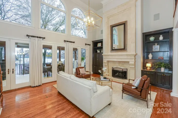 Luxury Waterfront living home w/Golf Course views in the prestigious Peninsula Community w/world class amenities! Experience this exquisite 5 bd/4.5 ba home w/open floorplan & walk-out basement. Enter through the iron doors into the spacious main level featuring: Stunning Great Room w/custom surround mantle, WViews from the Primary Suite w/renovated bath including freestanding tub & lakefront deck, a Chef's kitchen w/white cabinets, lg island, granite, Viking gas cooktop & oven w/custom hood, a bright Bkfst Area facing the water, & an airy Formal Dining Room. Upper level includes an office, 3 bdm/2 baths, & large walk in storage room. You'll enjoy entertaining from your walk-out basement w/its cozy living room w/fpl & coffered ceiling, stone accents in the pull up bar & entertainment area w/sink, wine bev coolers, & a bdrm w/full bath. Relax on your upper cov. porch or the outdoor patio w/a firepit. Covered dock with addl pergola to enhance the waterfront boating & living experience.