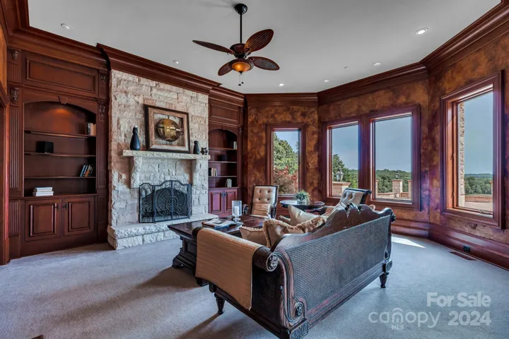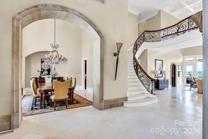Nestled amid rolling hills and exuding an aura of romance, Château Demain transports you to a realm of serenity and seclusion. Uncover the essence of opulent living in North Carolina within this grand estate, a haven of refinement. Greeted by the sun's gentle embrace in the atrium, your arrival is graced with unparalleled warmth. Framing the pool, the estate's outdoor expanse sets the stage for intimate gatherings and an embrace of nature's splendor. A secluded outdoor shower and pool house await your guests. Graciously boasting an array of lavish amenities, including lofty ceilings, an elevator, a captivating built-in aquarium, bespoke furniture, an enchanting entertainment chamber, and a cellar to house your most cherished wines. Sun-drenched interiors, courtesy of oversized windows, flood the living spaces with a natural radiance. The estate also includes a private airstrip and a hanger. It also consists of a historic log cabin.
