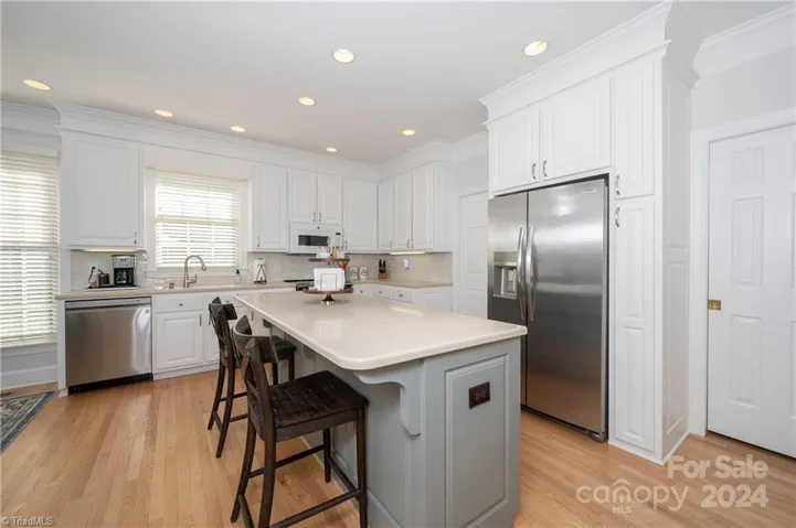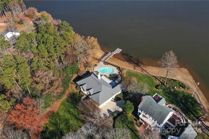 Luxurious Lakefront Living in this gorgeous white brick home on High Rock Lake featuring long range water views. As a matter of fact the views are among the best on the lake. This home features rare 200 ft of water frontage with a private dock & floater. Unobstructed water views & sunrises that are breathtaking. Meticulously maintained and has solid oak floors & 9 ft ceilings with custom moldings. Soft close kitchen cabinets and a great view of the lake while you are preparing dinner. Relax on your screened porch and watch the anglers fishing as High Rock Lake is the # 1 fishing lake in NC. Outside you have a massive deck overlooking a spectacular inground salt water pool and don't forget the views of the widest body of water in this part of the lake. One level living with approximately 2300 S/F is rare on the lake. No carpet, just beautiful oak hardwoods everywhere and tiled baths. Seriously, this is a lakefront home that most people only dream of. Sunset Cruises anyone?