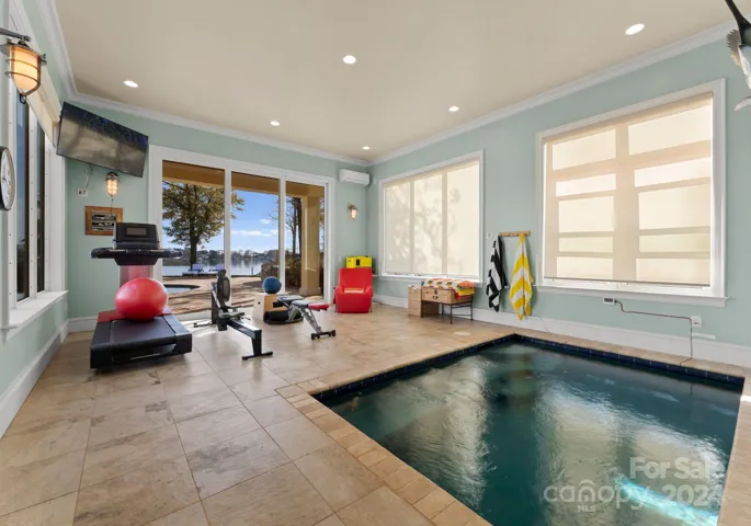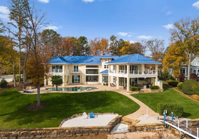 Introducing Cornelius's most iconic Lake Norman Home! Located on one of the Peninsula most coveted streets, this exquisite Key West/West Indies-style Lakehouse offers a rare opportunity to indulge in luxurious lakeside living w/ unparalleled main channel lake views. This architectural masterpiece is adorned w/ a spectacular glass wall of windows, crafted to withstand 200 mph winds, seamlessly blending luxury comfort & safety. Inside, be captivated by the rich allure of gorgeous 100-year-old reclaimed wood floors & a chef's kitchen equipped with top-tier appliances & luxurious finishes. The expansive primary bedroom suite is a true sanctuary, highlighted by the largest, most spectacular shower you'll ever encounter. Live every day the resort experience w/Spectacular Sunrise views, 2 pools/hot tubs 1 outdoor & 1 indoor, Gym, Theater/music room, a wine cellar w/ 2k bottles capacity, outdoor kitchen, private sandy beach, pier, covered dock & a remarkable 1,060 SF detached 2nd Living Qtr!