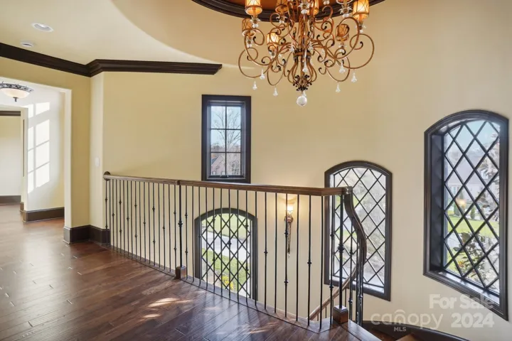 Welcome to this extraordinary European-style estate on 1.64 meticulously landscaped acres in the exclusive Jacobs Ridge neighborhood. Spanning over 8,000 sq. ft., this home blends luxury and functionality, featuring a dramatic three-story spiral staircase and an elevator. The main level boasts soaring dome and groin vaulted ceilings, a lavish primary suite with a spa-like en-suite bath, separate home office, and elegant living spaces. Upstairs, find four spacious bedrooms, each with en-suite baths and walk-in closets, plus flex space ideal for a media or bonus room. The walk-out basement is perfect for entertaining, with a home theater, gym, bar, spa, multiple entertaining spaces and recreation area.This all leads to the outdoor pool oasis complete with a saltwater pool, spa, outdoor kitchen, covered veranda, and putting green. Three-car garage on the main. This estate combines timeless European design, modern luxury, and unparalleled outdoor living.