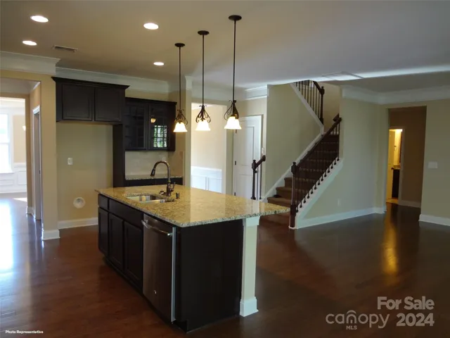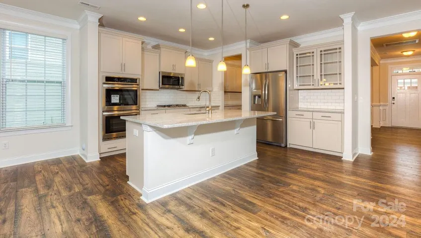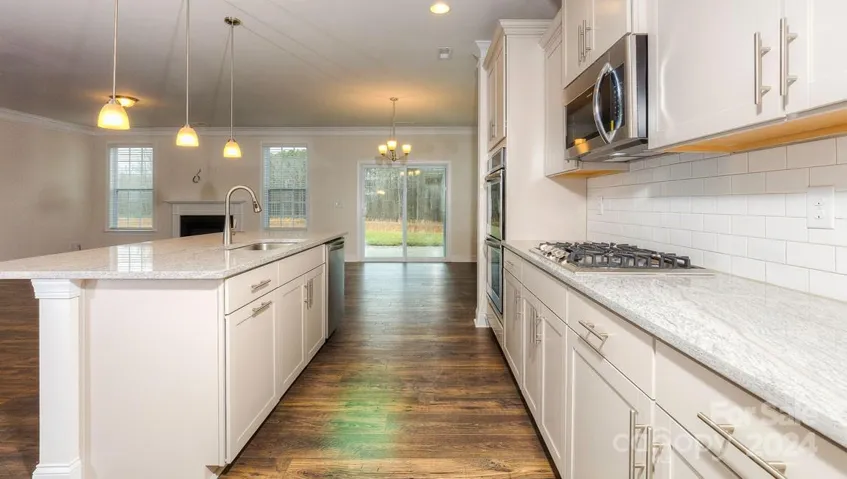 WOW! Our Popular Hampshire Home with an open Loaded Kitchen! A coffered dining room ceiling Greets your guest and flows wonderfully by a large Butler's pantry and a kitchen where you'll find Stylish White kit cabinets with quartz counter tops. Gas cooktop with double oven, microwave and dishwasher are included. Family room features cozy gas fireplace. This home features guest BR on main level, owners bath has a Luxury shower with dual sinks and walk in closet. Great floorplan in Top rated community. Home Is Connected Includes programmable thermostat, Z-Wave door lock and wireless light switch, touchscreen control device, automation platform, video doorbell, and Amazon Echo Dot! All home features are subject to change without notice. Community will include 2 pools, playground & Pavilion in the main common area, tennis courts & pickleball court, community boat ramp. Photos are representative and do not include all features.