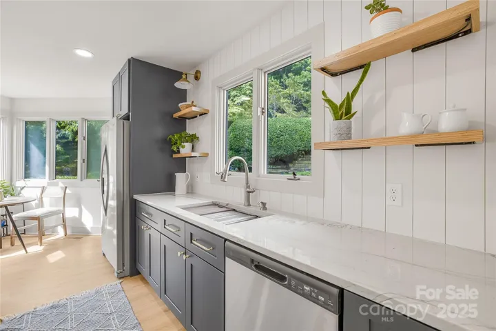 Beautifully remodeled Condo priced BELOW appraisal value! Enjoy your morning coffee on your large wraparound back deck with the mountain views and the Country Club of Asheville below. Primary suite is located on the main floor with convenient access to laundry and the rest of the open floor plan. The living rooms' vaulted ceiling invites all the natural light in as it opens up to a brand new kitchen with breakfast nook. Main floor includes two stunning new designer bathrooms and a two-tone shaker-style kitchen cabinet build with a beautiful Quartz top you wont want to miss. Downstairs you'll enjoy two large guest bedrooms or flex space for a pool table, game room, movie theatre or more! Elevator takes you to each floor with an oversized two-car garage on the bottom and even additional parking up on the main floor. Includes private community club house and pool!