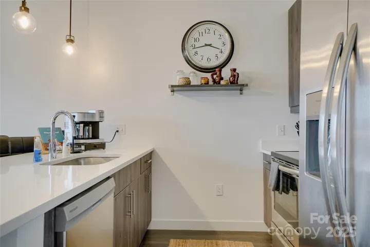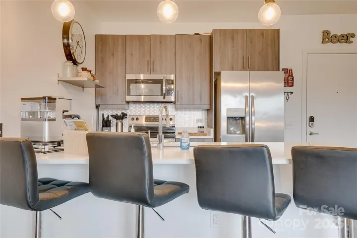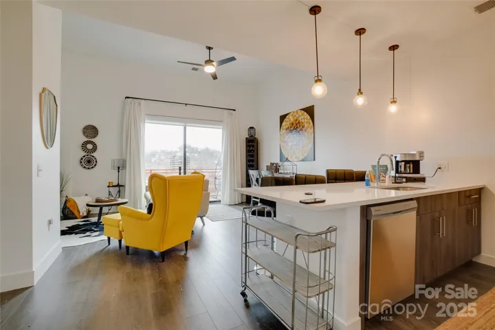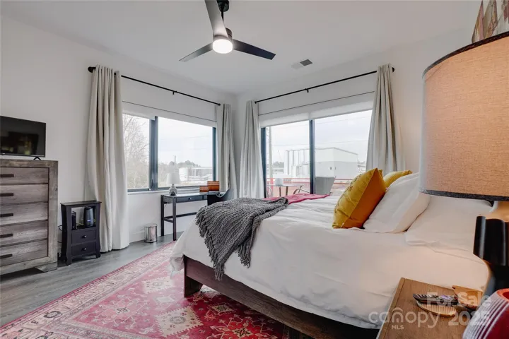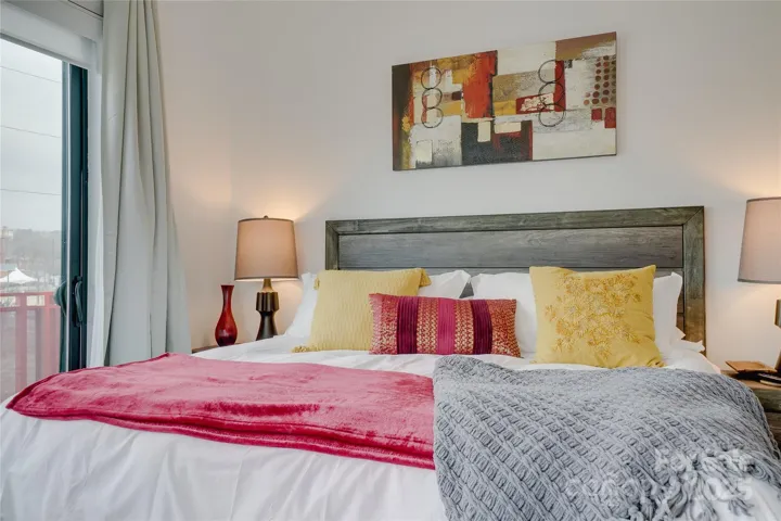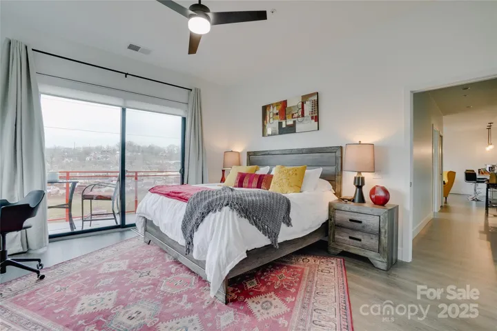 This charming two-bedroom, two-bath condo is nestled in the vibrant River Arts District of Asheville, N.C. A perfect blend of modern comfort and artistic flair, making it an ideal retreat for anyone looking to enjoy the local culture. You're greeted by an open-concept living area that seamlessly flows into the kitchen, perfect for entertaining. The primary bedroom is a true sanctuary featuring a spacious walk-in closet and an ensuite bath equipped with a stylish tile shower, enhancing your daily routine with a touch of luxury. Step outside onto one of the two balconies to take in breathtaking views of the New Belgium Brewery, a local favorite. The balconies provide a serene space to unwind while soaking in the picturesque surroundings. A second bedroom and bath offer versatility for guests or a home office, making this condo a perfect option for various lifestyles. Enjoy the artistic vibe of the River Arts District and the convenience of modern living in this delightful condo.