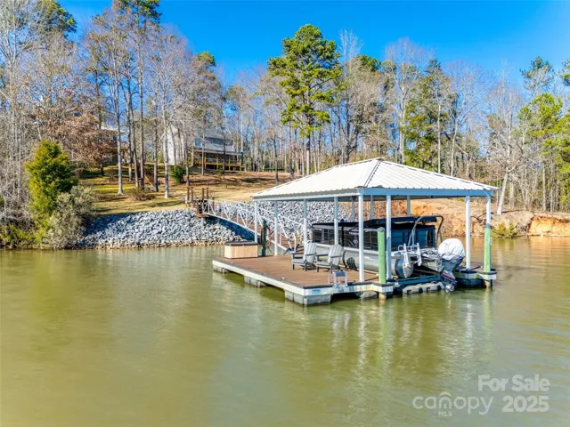 Waterfront luxury at its finest! Enjoy stunning lakefront views year-round from this exquisite Craftsman home with its very own covered dock & boat lift. Leave the chaos behind to escape to the quiet & fun of lake living. This home has plenty of room for family, friends & fun. Panoramic windows create water views, natural light, & the serenity of nature all year. The main floor boasts a luxurious primary suite, gourmet kitchen w/ huge island, walk-in pantry, cozy fireplace, office, laundry room & 2 story great room. The finished basement showcases more water views, a billiard/rec room, full bar, exercise/flex room, heated workshop, full bath & ample storage. Upstairs includes 2 private rooms w/private balconies, a shared jack-&-jill bath & loft area. Built as a 3 bedroom home, the septic system is permitted for 2 BR. This custom lakeside sanctuary offers peace of mind & stress-free living w/ its Geothermal HVAC, metal roof, boat lift, Generac generator & much more.