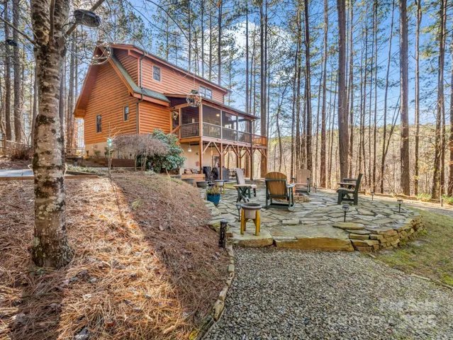 Nestled on 2.5 acres in the secure gated community of Hidden Lake, this beautifully maintained 2-bed/2-bath log cabin offers a combination of tranquility and modern pet-friendly comforts. Whether you’re seeking a full-time residence, vacation getaway, or STR investment, this checks all the boxes! With the opportunity create equity with an unfinished walkout basement and infrastructure for a 3rd bed & bath! Step inside to a sunny 2 story great room featuring a remote controlled stone fireplace. High-end finishes and features are utilized throughout including a triple water filtration system with UV. Step outside to enjoy mountain living at it's best, with a beautifully landscaped yard featuring a large fire pit, dual fuel BBQ, Smoker, Fenced dog area, and a private 10-acre lake, ideal for canoeing and kayaking. It's a short walk to the communities' lakeside park, pool, & spa! Located just 45 minutes from Asheville, its a easy drive to World-Class Dining, Entertainment, Hiking & Biking!