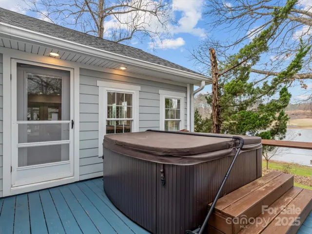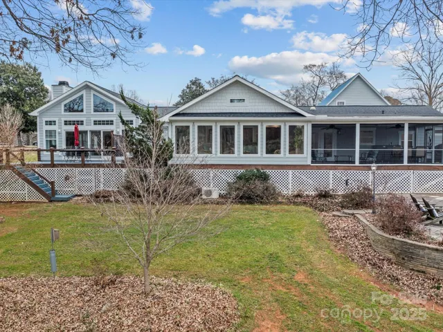 Stunning remodeled waterfront retreat w/ spectacular sunset views overlooking quiet cove. Located on large lot w/ expansive shoreline. Great room is a “must-see” w/ vaulted 14 ft ceilings, wood burning stone fireplace & custom mantle- the perfect space for gatherings. Enjoy peaceful lake views from screened porch, sunroom, kitchen & great room, or enjoy a chilly night in the hot tub to take in the stars. The kitchen is flooded w/ natural light & features quartz countertops, SS appliances, & large island. Vaulted ceiling sunroom includes custom live-edge bar & liquor cabinet, ideal for hosting. One floor living offers a spacious primary suite w/ ensuite plus 2 more bedrooms w/ shared bath & large sunny office. Oversized 2 car garage & private-entry apartment is ready to go as profitable AIRBNB. Private dock w/ boat slip, covered sitting area & bar. Beautifully landscaped yard w/ irrigation, fenced-in veg garden & paver patio w/ fire pit to enjoy this beautiful property year round.