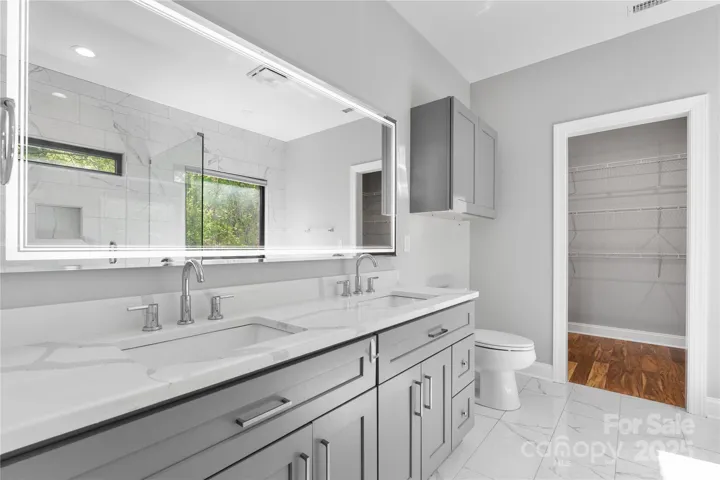 The primary suite boasts panoramic lake views, a jetted tub, tile and glass shower, and a backlit mirror. The walk-out basement includes a second kitchen, great room with a fireplace, two bedrooms, and bonus space for an office or wine cellar.