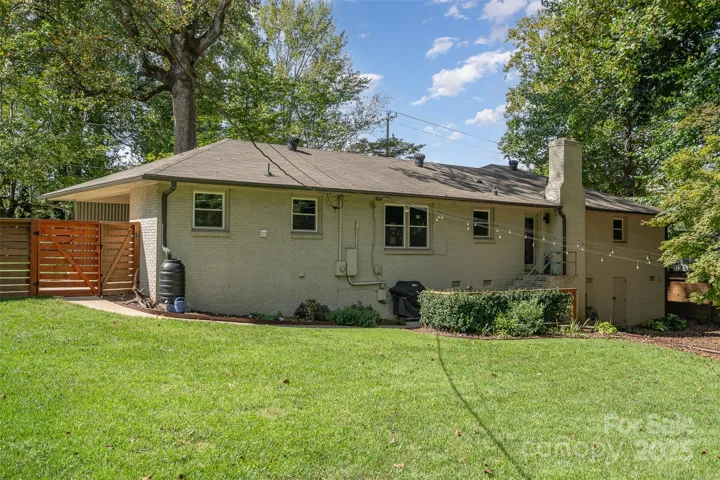 Saunter into this Shannonhouse Stunner! This Atomic Age brick ranch was fully renovated in 2018 to highlight authentic Mid-Century Modern design. The open layout connects the living room, kitchen, and dining areas seamlessly. The kitchen stands out with custom cabinetry, quartz countertops, a retro mosaic tile backsplash, and stainless steel appliances. The living room includes stylish built-ins, while natural light pours in through new high-efficiency 2024 windows. The bedrooms feature chic paint and fixtures, with the primary suite offering a dual vanity, walk-in shower, and walk-in closet. Hardwood floors run throughout, paired with a clean, modern color palette. Extras include a large tiled laundry room and a two-car carport with storage. The fully fenced backyard boasts lush fescue grass and a natural area ideal for a fire pit. Just minutes from NoDa and Plaza Midwood, this home combines mid-century charm with modern convenience. Don’t miss you chance for this darling MCM!