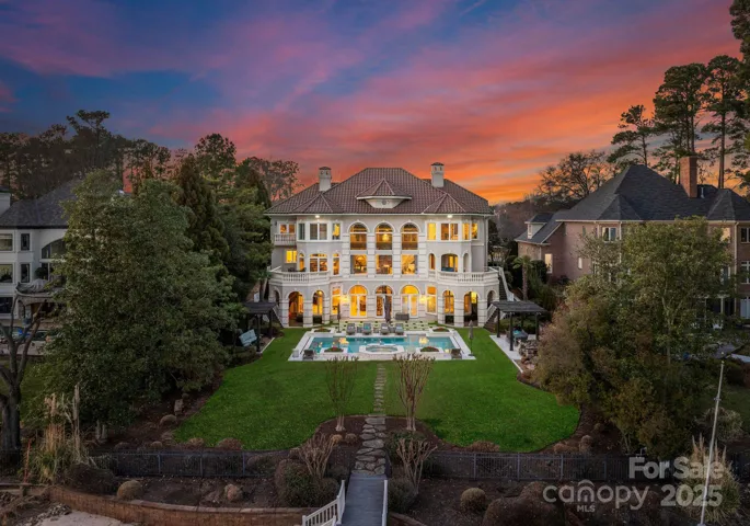Nestled in the esteemed Peninsula community, directly across from the Yacht Club, this grand estate is the epitome of timeless elegance. Set on the tranquil shores of Lake Norman, the home features multiple fireplaces, including a stunning double-sided design in the great room. The expansive master suite serves as a serene retreat, with a lavish ensuite to match. The gourmet kitchen, second kitchen, and open-concept living areas are tailored for refined entertaining. A wine room, theater, sauna, & gym complete the home's offerings. Outdoors, the covered sitting area along the gangway invites leisurely lakeside moments, while the outdoor grilling area, firepit, & two pergolas enhance the space for gatherings. A saltwater pool and spa provide an inviting oasis. With an elevator, exquisite finishes, and sweeping lake views, this residence is a rare gem for those who appreciate the finest in sophisticated living. Offered fully furnished with select exclusions—see attachments for details.