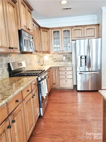 We Love This Unit! Open/bright, 3/2.5 Waterview Townhome w/2 car garage in Cornelius. NO PETS. Chef's Gourmet kitchen, stainless appliances, 5 burner gas stove, 42' Wood Cabinets, including glassware display window, Granite, tile backsplash, huge bar-top counter., plenty cooking space. Upgrades in the unit were made to allow Townhome to LIVE like a home! Dining/Office/Flex space w/tray ceiling. Great room w/custom rustic gas log fireplace, wall of windows overlooking private courtyard w/floating deck, artificial turf & trees. Primary suite w/tray ceiling, ceiling fan & designer organized closet. Primary Bath retreat features dual vanities, huge garden tub, separate shower. 2 addtl' secondary bedrooms share an addt'l full bath. 2 car garage! Amenities include pool, day dock, boat ramp, kayak/paddle board storage...Private entry trail into Jetton Park. Includes washer/dryer. A gem rental for the avid nature lover! Close to shops, restaurants & all Lake Norman has to offer!