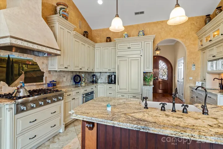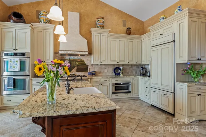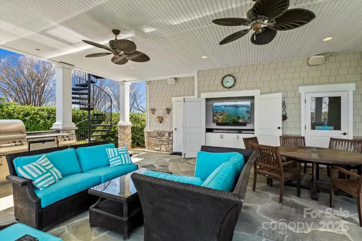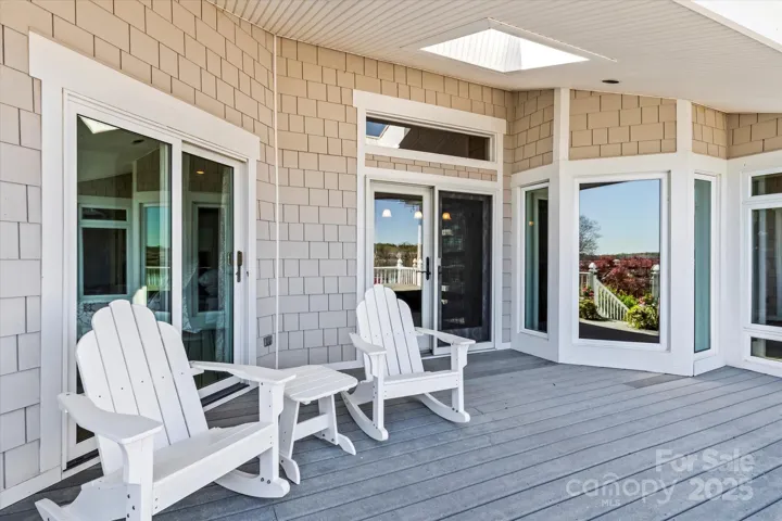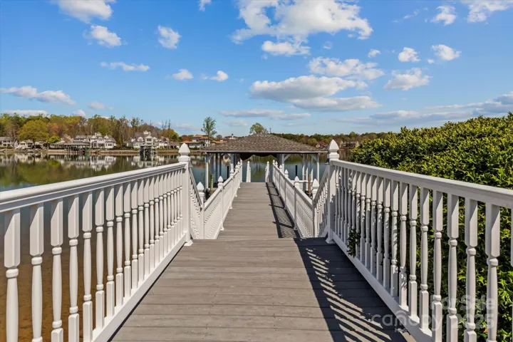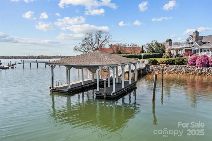 Nestled along 400+ feet of shoreline on Lake Norman, this breathtaking waterfront retreat beckons offering unparalleled blend of luxury and tranquility. On a Peninsula, surrounded by water, the private winding road leads you to the home’s Hardie-shake siding accented w/stone. Step inside to the open concept great room where a wall of floor-to-ceiling windows floods the space w/sunlight & frames panoramic views of the lake. The hardwood floors flow seamlessly throughout the first floor. The gourmet kitchen boasts soft ivory custom cabinetry and granite countertops. The center island is complete w/built-in farmhouse sink & seating. Top-of-the-line stainless steel appliances, including a double oven, gas Thermador cooktop, built in refrigerator and Miele dishwasher await your culinary adventures. The Primary suite on the main level is a sanctuary unto itself, with dual closets. The en-suite bath featuring soaking tub (see directions)