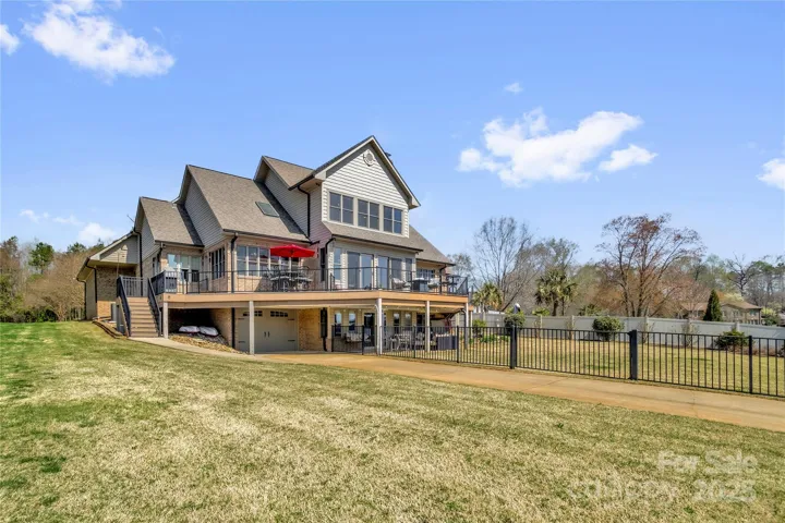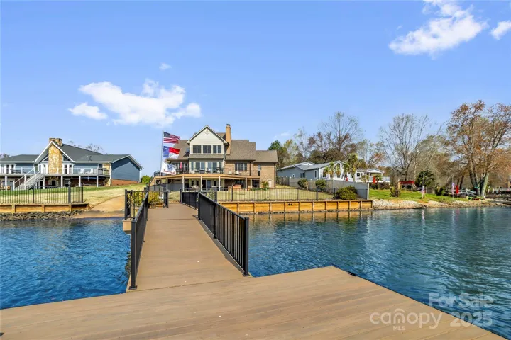 Lakefront Living at Its Finest! Stunning waterfront home with breathtaking views, deep water access, private pier in a quiet, no-HOA neighborhood minutes from I-85 and Salisbury. Fenced, irrigated yard features boat ramp, hot tub, & expansive outdoor spaces, including large deck & covered patio. The chef’s kitchen boasts exotic granite, KitchenAid 6-burner gas cooktop, double convection ovens, Electrolux double fridge/freezer, beverage fridge, & custom cabinetry. Main level includes two bedrooms, full bath, & half bath. Upstairs, primary suite features a wall of windows to the lake, spa-like bath, & massive walk-in closet. Finished walkout basement offers a spacious entertainment room with fridge, microwave, & fireplace, plus double sink full bath, flex room, exercise room, & storage space. The FROG is currently used as office. Newer front & garage doors, gracious covered front porch, & two built-in safes add to the appeal. A rare opportunity for luxury lakefront living—don’t miss it!