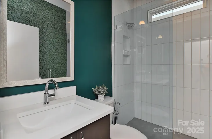 Modern 4 bedroom/3 full bath plan built in 2020 is one of five exclusive homes in the Usonia on Lakedell development. Featuring modern floor plan with large, open kitchens & living rooms with tall ceilings, plenty of windows and natural light. Large primary bedroom with walk-in closet and primary bath w/ large walk-in shower plus additional bedroom with ensuite full bath. Bedrooms #3 & #4 can be used as a bedroom or home office w/ access to 3rd full bath. Kitchen is open to large dining area and features custom cabinetry, quartz countertops, large island overlooking the living room, tile backsplash, gas range & stainless steel refrigerator included. Huge deck w/ plenty of space for outdoor dining & TV viewing area (mounted TV case included, TV in case not included and has been removed). Set on nearly 1/2 acre lot w/ fenced backyard and nice front porch at front of the house. Attached carport for covered parking. Home is located 2.5 miles east of the Plaza Midwood area off The Plaza.