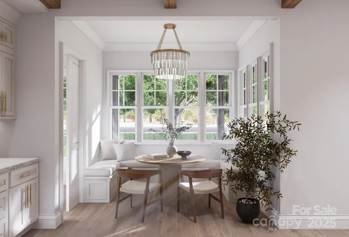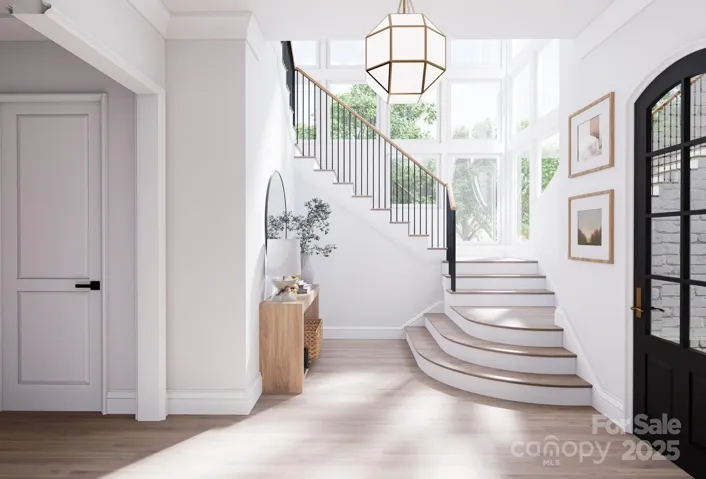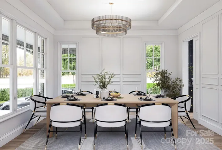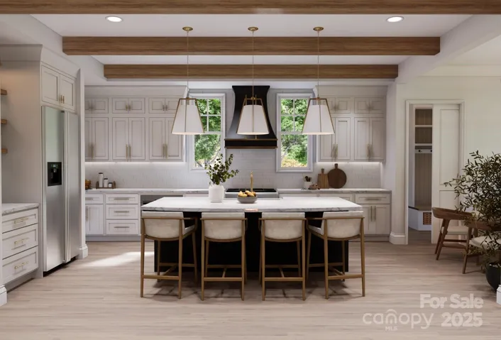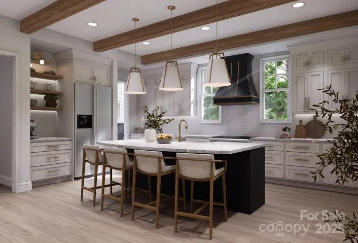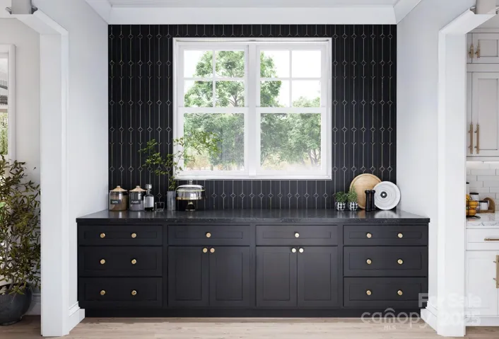 This new construction home blends European architecture with modern design, featuring high-quality materials and finishes throughout. The entry opens to a foyer and dining room with a crystal chandelier. Adjacent to the kitchen is a butler's pantry with bold cabinetry and dark quartz countertops. The great room has detailed ceiling beams, and a striking chandelier. Upstairs you will find the primary suite features painted ceiling beams and a spa-like bath with marble and brass fixtures. Three spacious bedrooms, a secondary bathroom that is a Jack-and-Jill layout with playful penny tile. The upper level also includes a media/bonus room with a wet bar, a laundry room with custom cabinetry, a loft, and attic storage. The home showcases hand-finished oak flooring, custom millwork, and designer lighting. Its prime location allows for walking access to downtown Waxhaw's shops and restaurants, community park, offering character, comfort, and convenience. Large lot with endless opportunities!