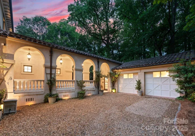 Set on a 1.37-acre wooded lot in the highly desirable Pellyn Wood, Villa Katrina at 5030 Hardison Road is a striking example of Palladian architecture, defined by classical symmetry, Venetian stucco, Italian limestone, and a 40-foot domed atrium crowned by a stained-glass skylight. A curved gravel driveway leads to the elevated homesite, where arcades connect the main residence to two separate two-car garages flanking the structure. Inside, the expansive primary suite offers a luxurious retreat with a spacious bedroom, elegant sitting room, opulent bathroom, dressing area, and generous walk-in closet. Additional features include a walnut-paneled library, gourmet kitchen, and a finished lower level with a media room, exercise room, bonus room, wet bar, and climate-controlled wine cellar. Located near top-tier schools, this custom-designed estate offers refined living in one of Charlotte’s most prestigious neighborhoods. This is Charlotte's one & only true Italian Palladian work of art.