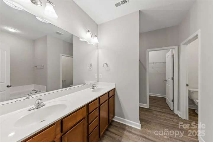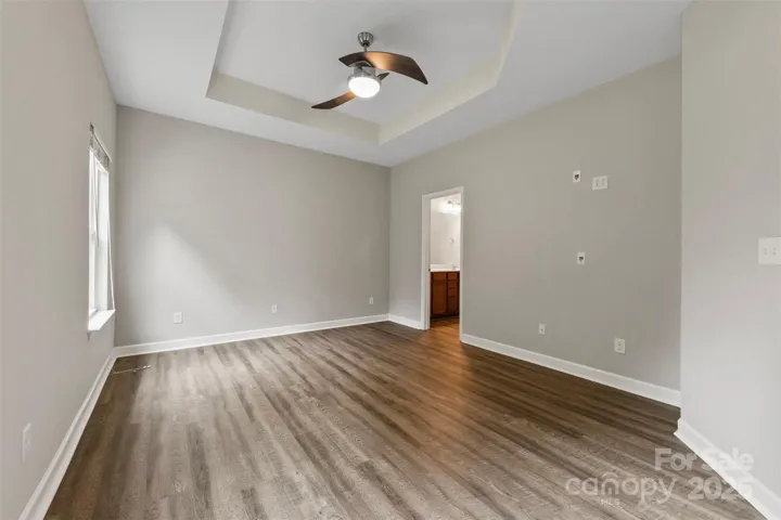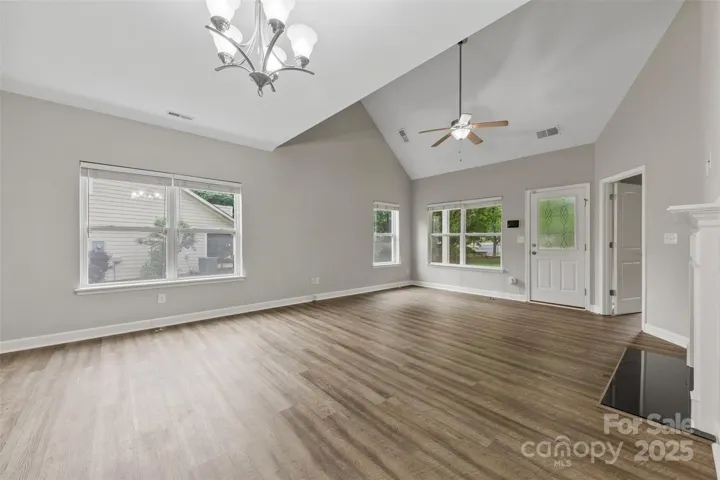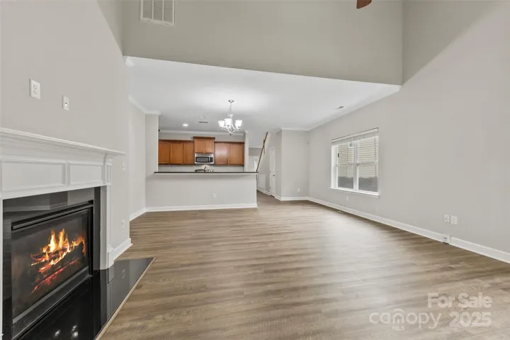 Welcome to 8505 Loxton Circle! This beautiful 3 bedroom, 2.5 bathroom brick facade end unit home also includes a 2 car garage. Step inside and be greeted by vinyl plank flooring, a cozy fireplace, and large windows allowing tons of natural light. The kitchen features stainless steel appliances, granite countertops, new backsplash, and tons of wooden cabinetry for storage. Then step outside to the covered patio perfect for hosting barbecues, gardening, or just enjoying the outdoors. The main level has a spacious bedroom with an en-suite bathroom that features double vanity sinks and a soaking tub. Upstairs, you’ll find 2 cozy bedrooms with new flooring, a full bathroom, and an expansive, unfinished walk-in attic space brimming with possibilities. Located in a prime area with lots of community amenities including tennis courts, an outdoor pool, fitness center, clubhouse, walking trails, and access to Lake Wylie. This home is in a perfect location! Schedule your viewing today!