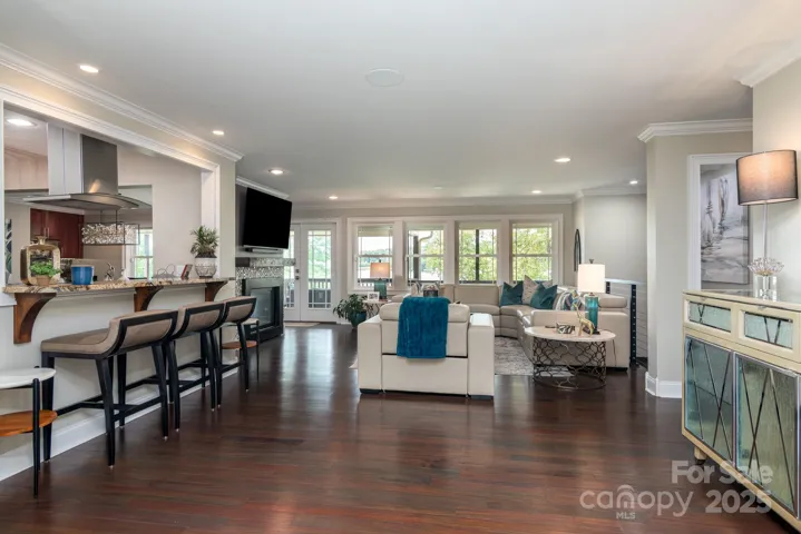 Experience waterfront living in this exquisite home, nestled on a private lot, offering a harmonious blend of modern luxury & natural beauty. Gleaming floors throughout add warmth & sophistication. The heart of the home is its expansive living area, where the kitchen, dining area, and living rooms flow together. Indulge in your primary suite, a private sanctuary with its large, spa-like shower, dual vanities with ample storage & custom closet. Enjoy breathtaking views of Lake Norman from many vantage points throughout the home. The lower level, newly constructed, includes a second kitchen, media/billiards room, wet bar, fitness room, a spacious Bedroom & and private living quarters/in-law suite. Discover a luxurious backyard paradise with a stone firepit & hot tub terrace ideal for outdoor dining or relaxing with serene views.