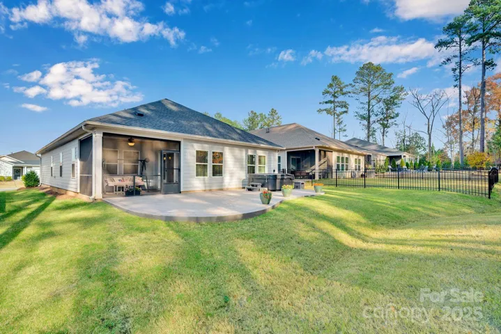 This beautiful home has been meticulously cared for. 3 Bedroom, 2 Bath home in the desirable Solena at the Vineyards at Lake Wylie. Spacious Kitchen with elegant White and Grey Accents and Stainless Appliances. A Custom Barn Door separates the Secondary Bedrooms and Bath, allowing for additional privacy in this open Concept Layout. The spacious primary suite offers a trey ceiling, dual vanities and a large walk-in closet. Homeowner added modern, custom light fixtures throughout the home. Imagine overlooking your lush, wooded backyard while relaxing on your Screened in Porch. And on the back patio there is also a hot tub for you to enjoy! This Community is known for its top tier amenities including a pool, tennis and pickleball courts and scenic trails along the waterfront. Schedule a tour for this beautiful home today! Buyers Agents Welcome!
