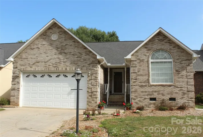 Discover this well-maintained, full brick home offering 1,582 sq. ft. of seamless, low-maintenance living. The open-concept interior is defined by soaring vaulted ceilings and an inviting living room featuring an elegant arched ceiling and gas-log fireplace. The desirable floor plan places the primary suite on the main level, complete with a generous walk-in closet and private bath. Fresh paint in main living areas and kitchen cabinets with new granite countertops in kitchen!