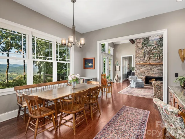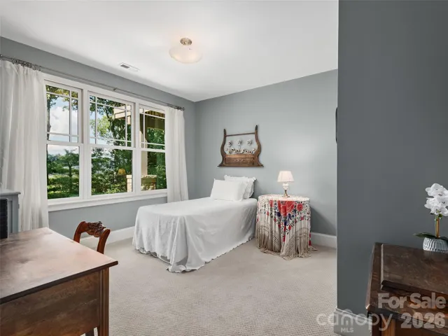 Luxury mountain living in coveted Biltmore Park! Set on 1.5 private wooded acres just minutes from Town Square, this custom retreat pairs serene seclusion with everyday convenience. A winding drive leads to sweeping westerly views and spectacular sunsets. Inside, soaring ceilings and a dramatic two-sided stone fireplace anchor the great room, which opens to a brand-new TimberTech deck with sleek cable railing. The chef’s kitchen shines with a large island, granite counters, high-end cabinetry, sunny breakfast nook, and scullery with built-ins. The main-level primary suite offers a spa-like bath with freestanding tub and oversized frameless tile shower. Downstairs features three bedrooms (one en suite), two baths, a spacious family room with wood-burning fireplace, and a covered flagstone porch—perfect for cool mountain evenings. Elevator to all three levels, including an unfinished attic ready for future expansion. This home is a true find for the discerning buyer.
